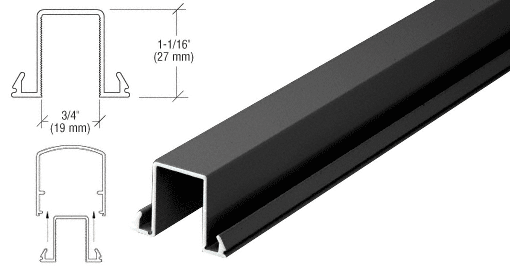 CRL Matte Black 200, 300, 350 and 400 Series 241" Long Horizontal Mid-Rail