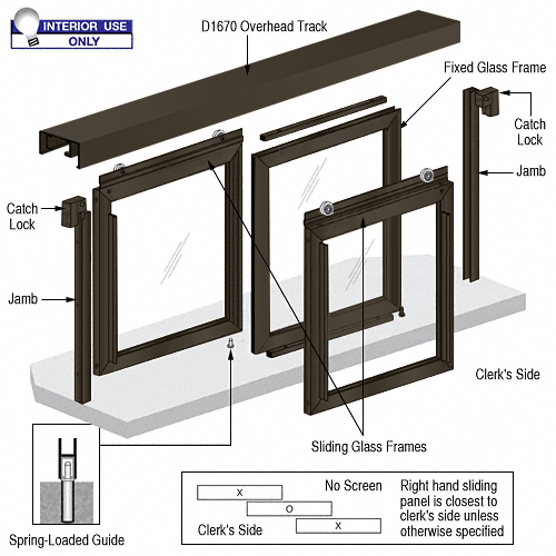 • The CRL Fawn Model Pass-Thru Window is the most popular window of its type. Three panels (one large fixed and two smaller sliding ends) give the benefit of an unobstructed counter surface and an easy rolling overhead track. Ideal for receptionist windows and typical office and pass-thru applications.